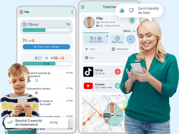 ⭐⭐⭐⭐⭐ De mare ajutor. Aplicația m-a ajutat să păstrez o limită asupra timpului pe care îl petrec copiii pe telefoanele lor, fără să mă facă să par un tiran. Faptul că se creează o competiție, pentru numărul de puncte și de chei, face ca cei doi copii să folosească zilnic aplicația.